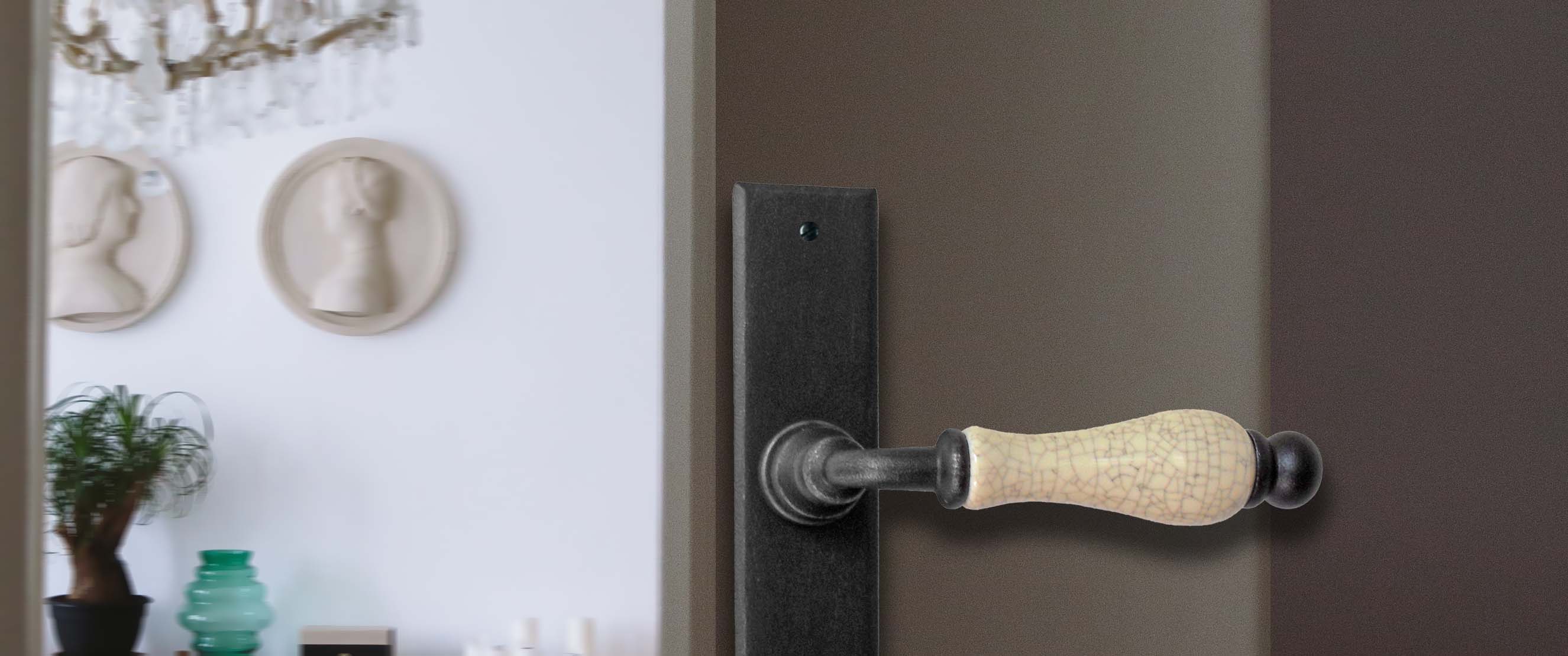 Klasyczna klamka wykonana z ręcznie kutego żelaza oraz porcelany Bavaria. Jest to klamka z nutą melancholii i urokiem jak sprzed lat.