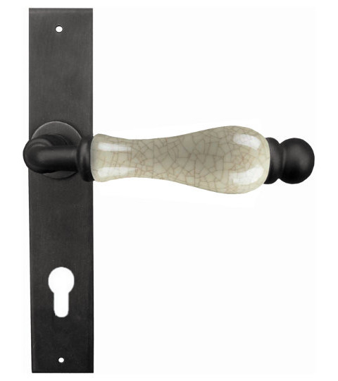 Klasyczna klamka wykonana z ręcznie kutego żelaza oraz porcelany. Harmonijny kształt rękojeści wykonanej z oryginalnej bawarskiej porcelany, to jedynie zapowiedź cech, którymi wyróżnia się prezentowane tutaj okucie. Jest to klamka z nutą melancholii i urokiem jak sprzed lat. Klamka dostępna jest w czternastu powłokach kolorystycznych. Pozwala to dobrać kolor klamki do charakteru wnętrza lub do kolorystyki drzwi i okien.