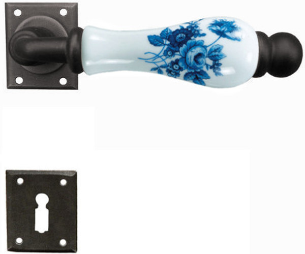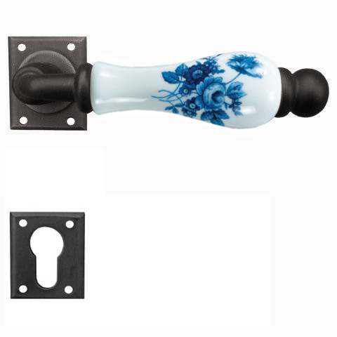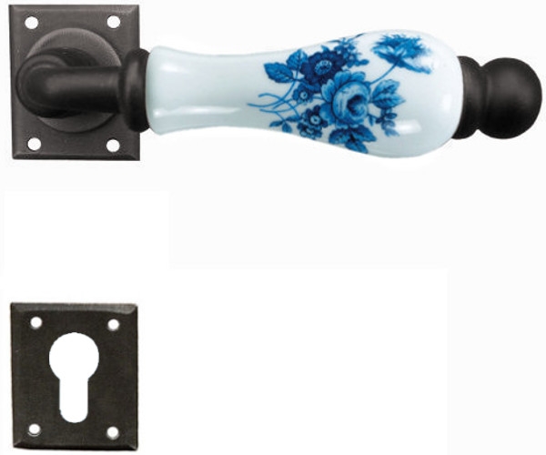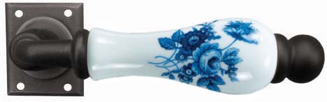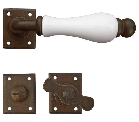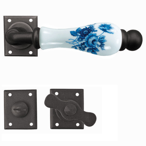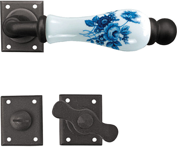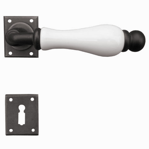 Klasyczna klamka wykonana z ręcznie kutego żelaza oraz porcelany Bavaria.