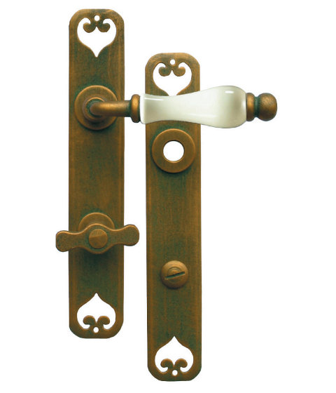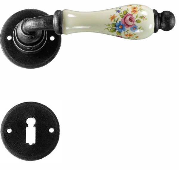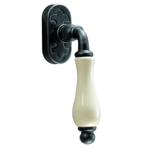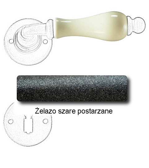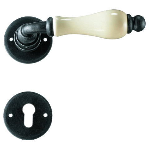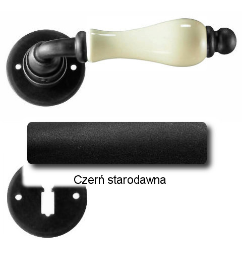 Klasyczna klamka wykonana z ręcznie kutego żelaza oraz oryginalnej porcelany kremowej Bavaria, to jedynie zapowiedź cech, którymi wyróżnia się prezentowane tutaj okucie. Jest to klamka z nutą melancholii i urokiem jak sprzed lat. Klamka dostępna jest w czternastu powłokach kolorystycznych. Pozwala to dobrać kolor klamki do charakteru wnętrza lub do kolorystyki drzwi i okien.