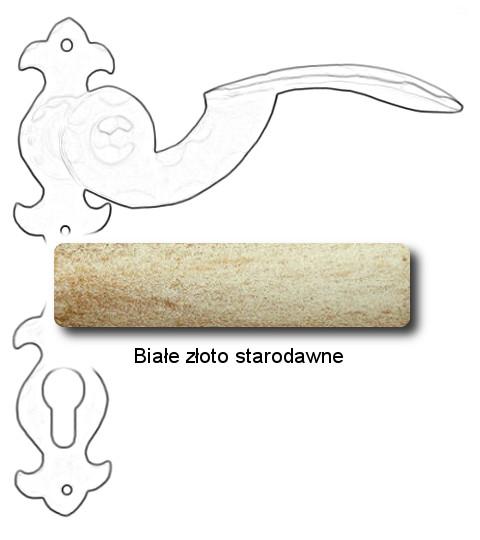 Wymiary: rozeta 85x35x2 mm, dł. rękojeści 140 mm.