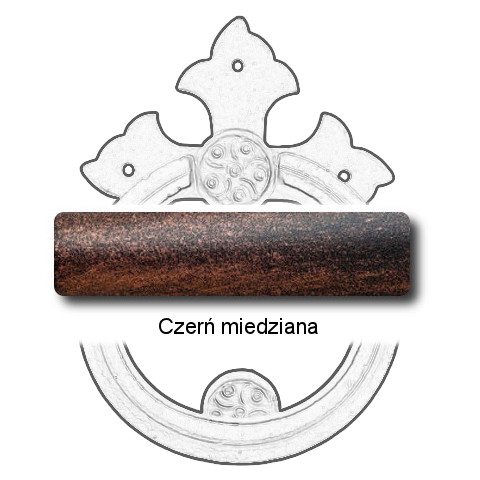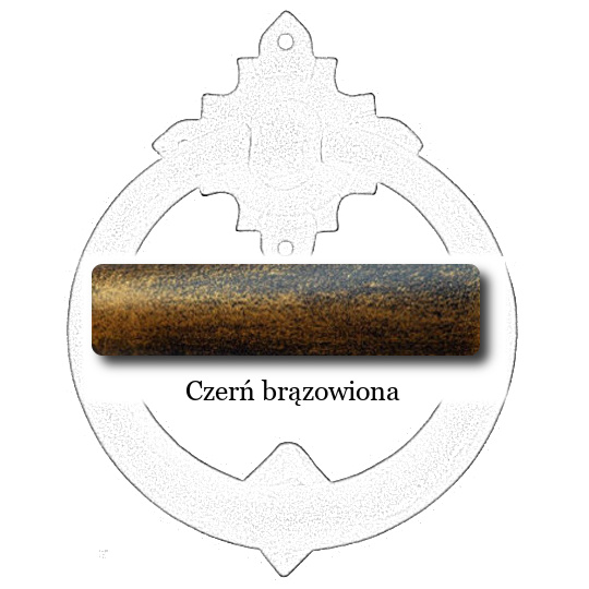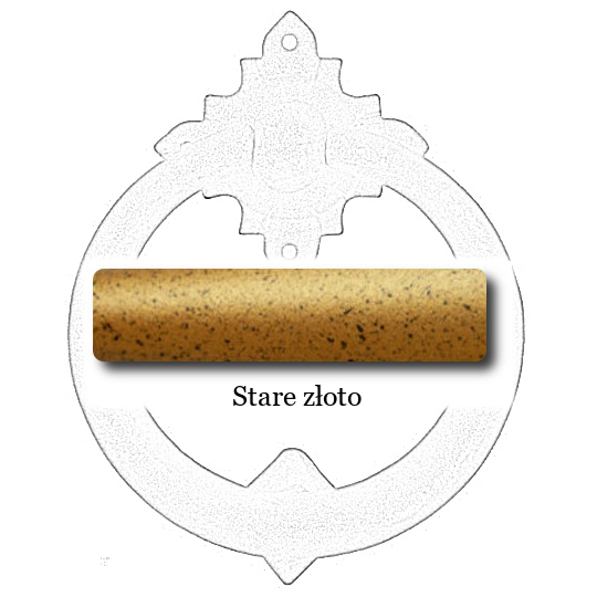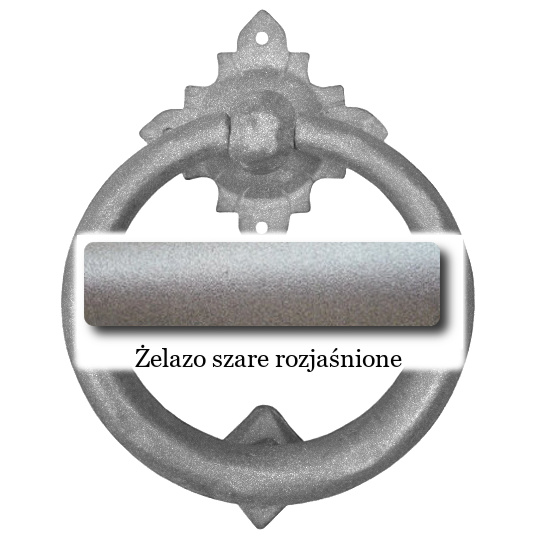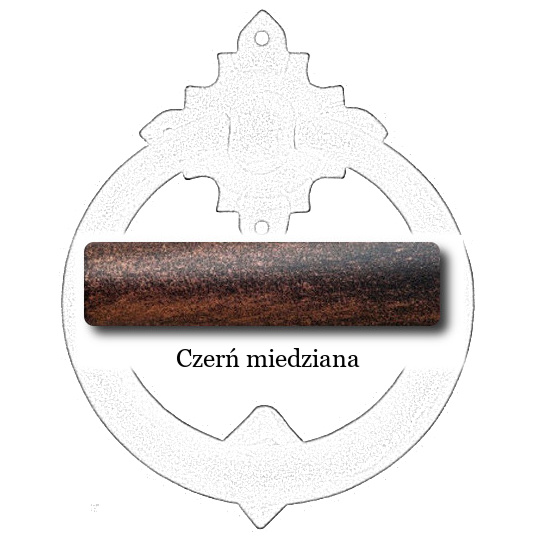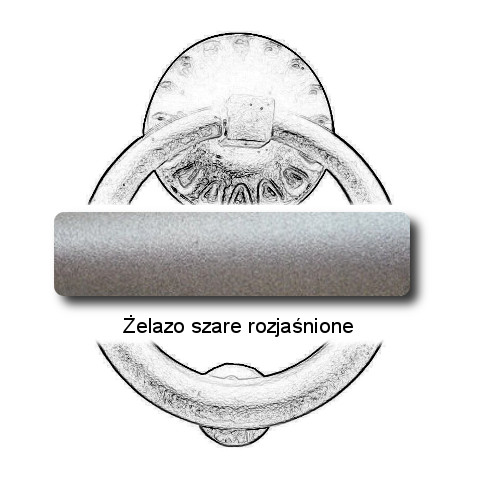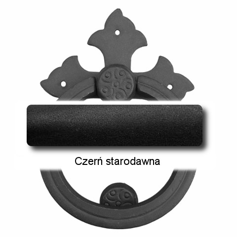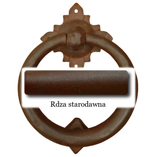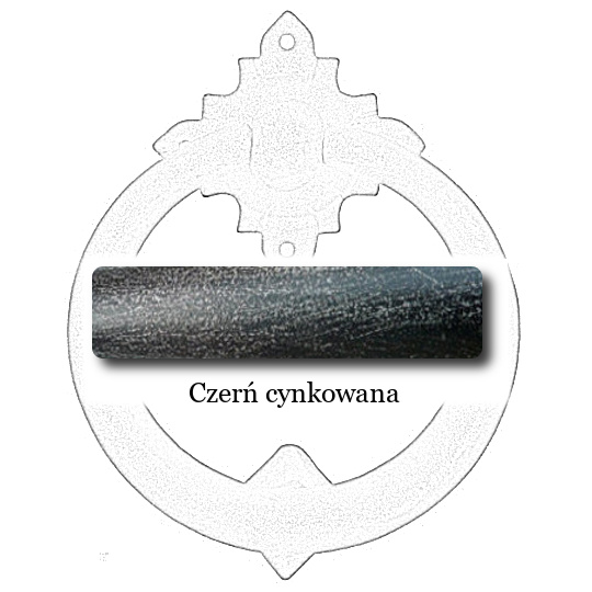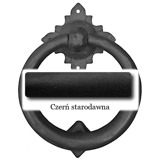 Klasyczna kołatka wykonana z ręcznie kutego żelaza i dostępna w trzynastu powłokach kolorystycznych. Pozwala to dobrać kolor kołatki do kolorystyki drzwi oraz pozostałych okuć.