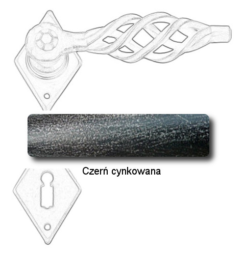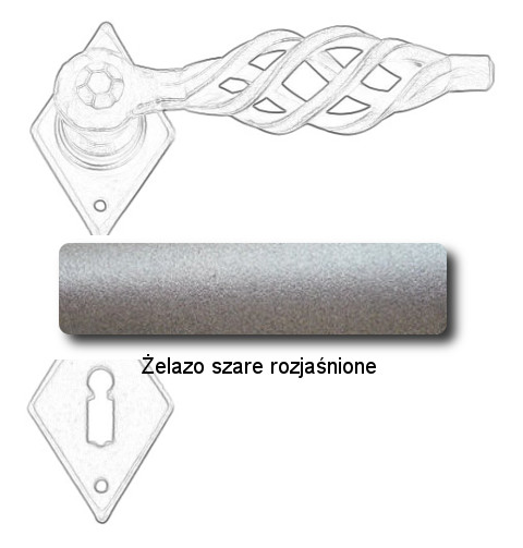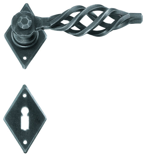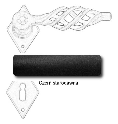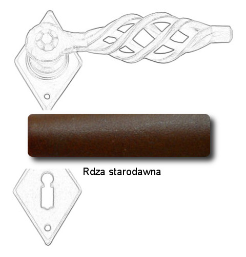 Klasyczna klamka na rozecie wykonana z ręcznie kutego żelaza i dostępna w trzynastu powłokach kolorystycznych. Dostępne warianty: bez dolnej rozety, z dolną rozetą na klucz, na wkładkę oraz z blokadą WC.
