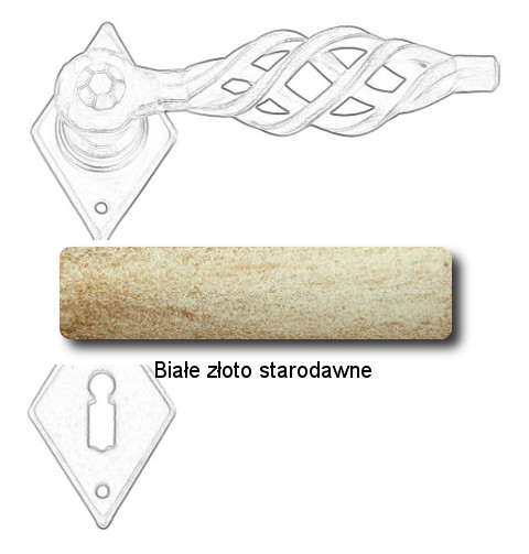Wymiary: rozeta 70x45x2 mm, dł. rękojeści 125 mm.