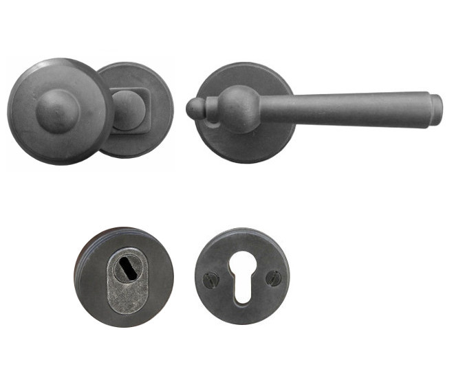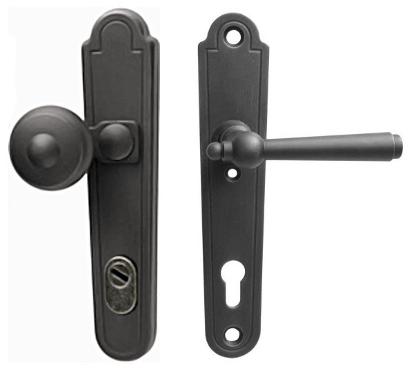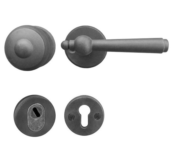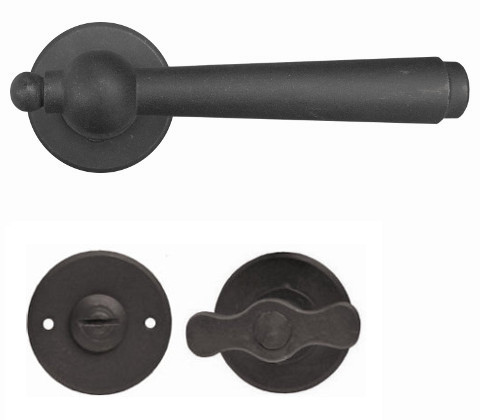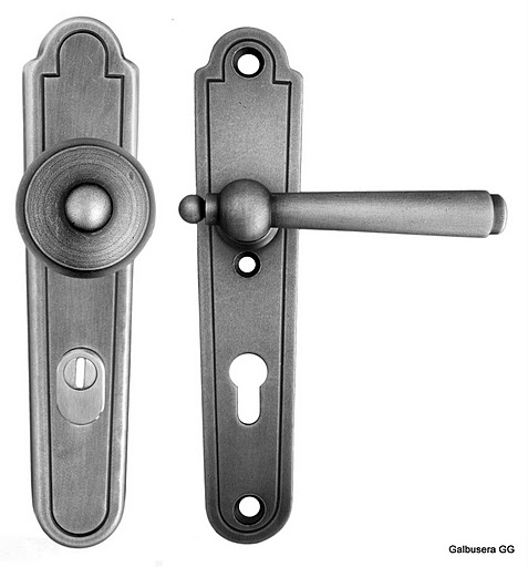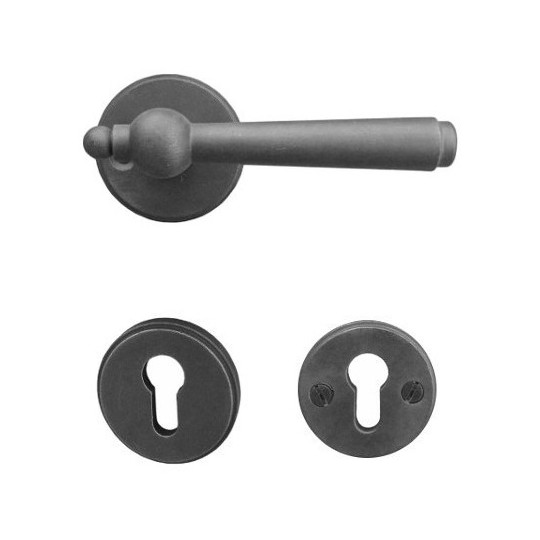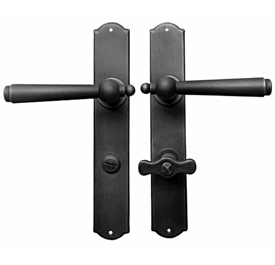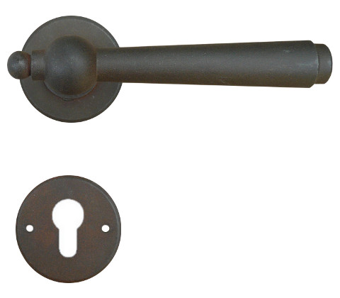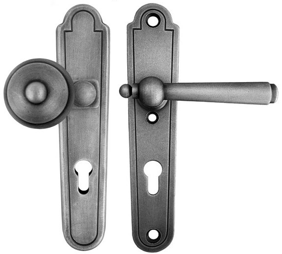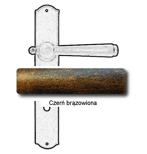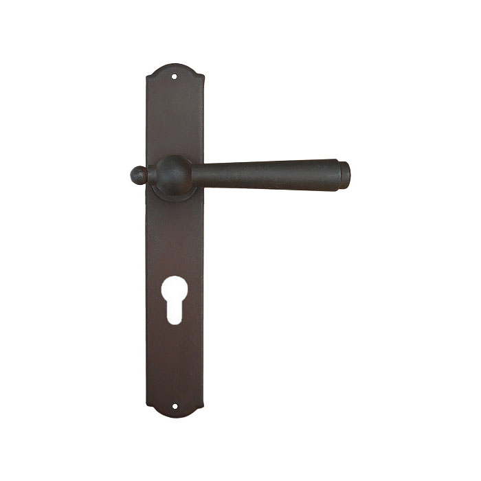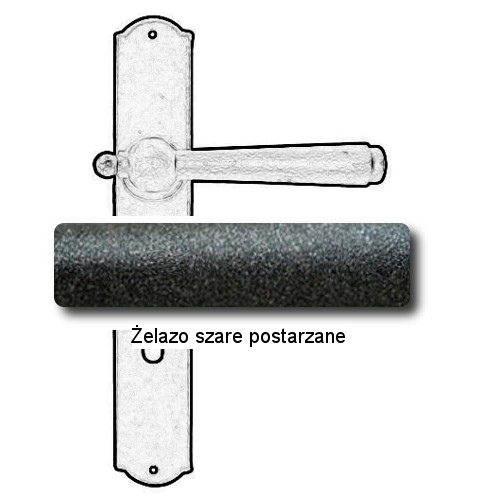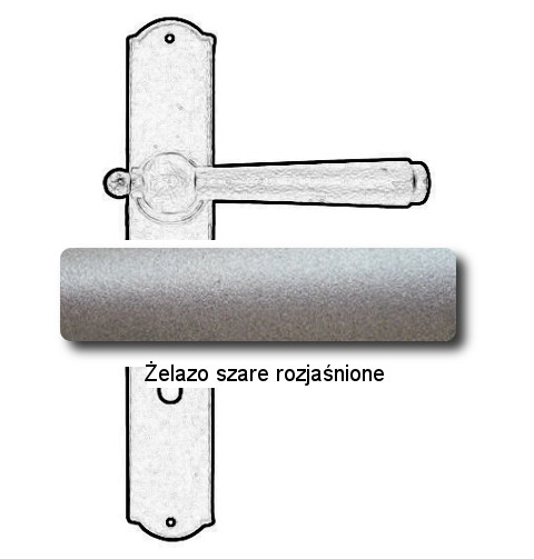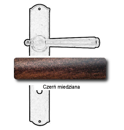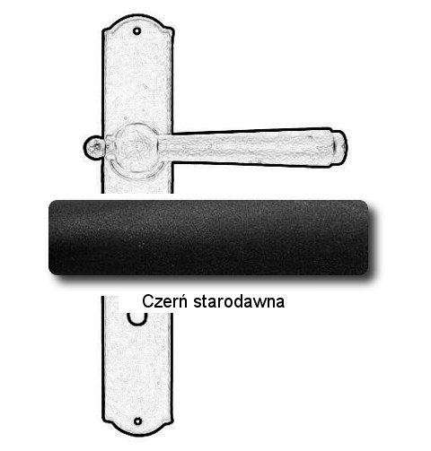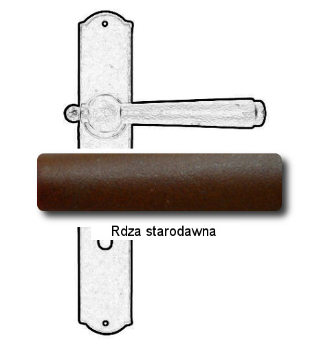 Klasyczna klamka na szyldzie długim wykonana z ręcznie kutego żelaza i dostępna w trzynastu powłokach kolorystycznych. Dostępne warianty: bez otworu, z otworem na klucz, na wkładkę oraz z blokadą WC.