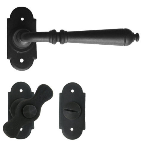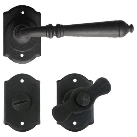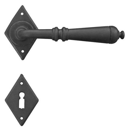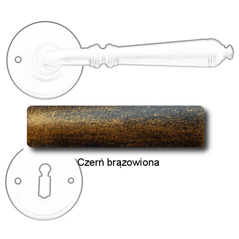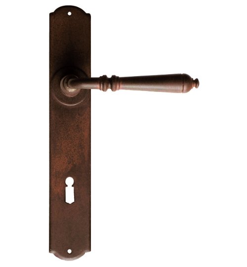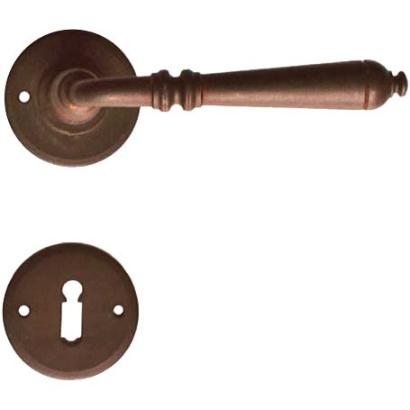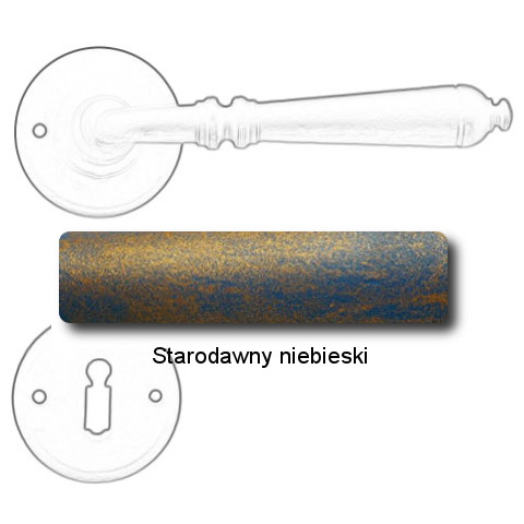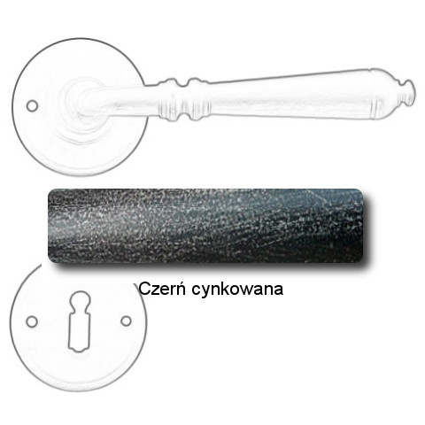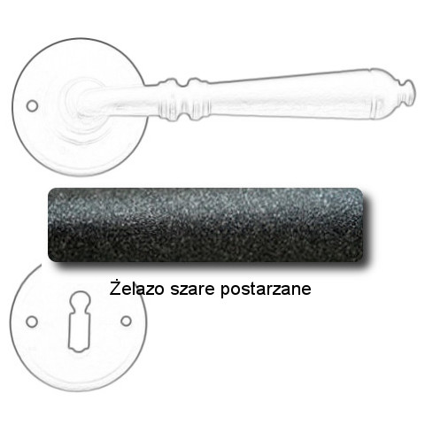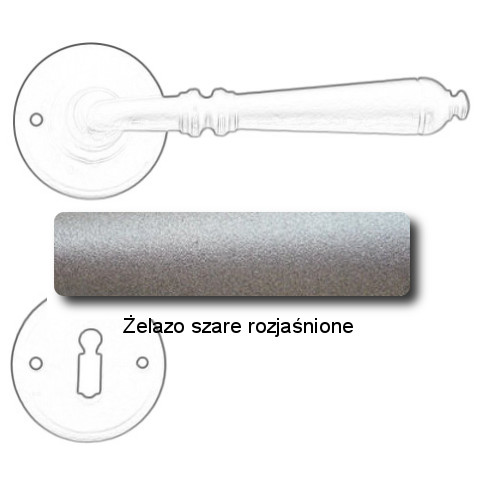 Klasyczna klamka na rozecie wykonana z ręcznie kutego żelaza i dostępna w trzynastu powłokach kolorystycznych. Dostępne warianty: bez dolnej rozety, z dolną rozetą na klucz, na wkładkę oraz z blokadą WC.
