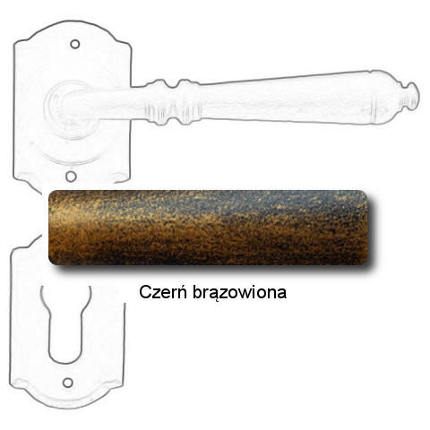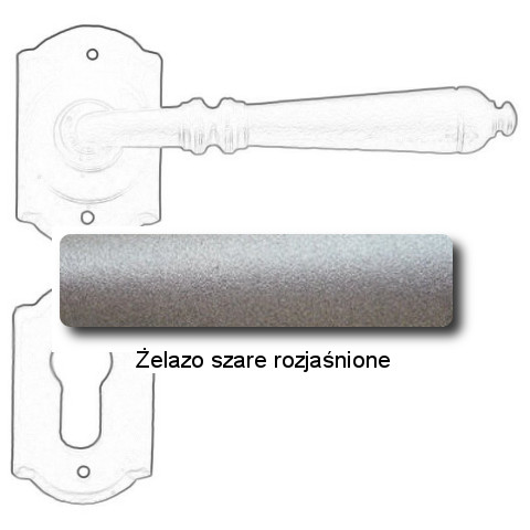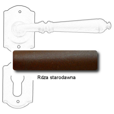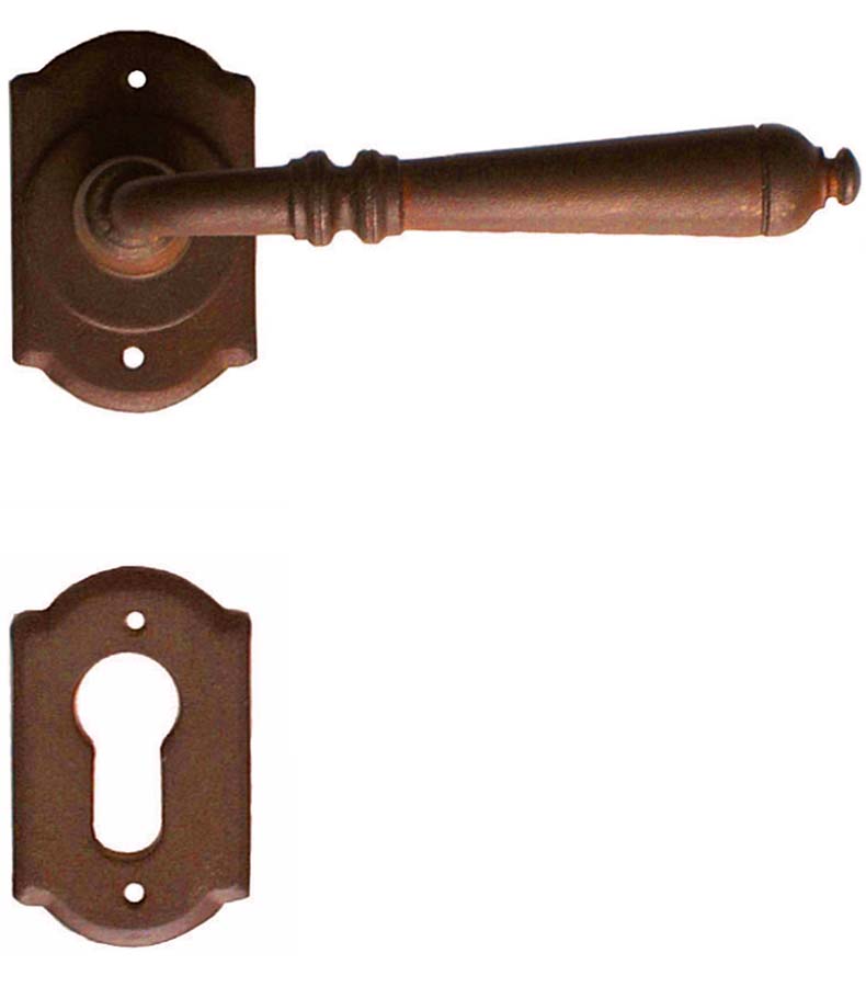 Klasyczna klamka na rozecie wykonana z ręcznie kutego żelaza i dostępna w trzynastu powłokach kolorystycznych. Dostępne warianty: bez dolnej rozety, z dolną rozetą na klucz, na wkładkę oraz z blokadą WC.