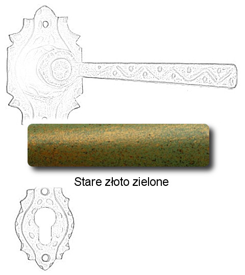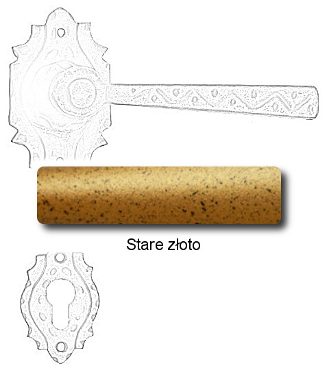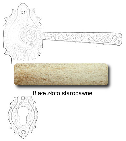 Wymiary: rozeta klamki 90x50x2 mm, dł. rękojeści 140 mm, dolna rozeta 60x40x2 mm.