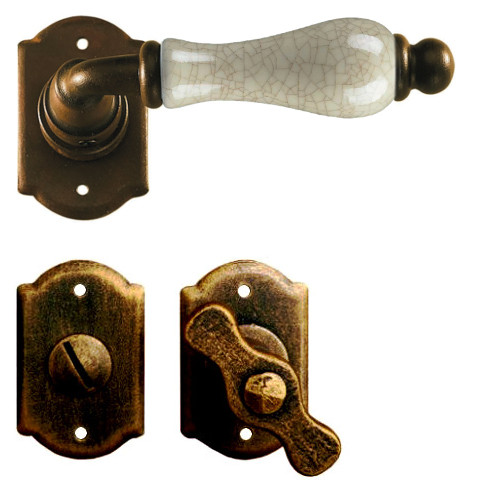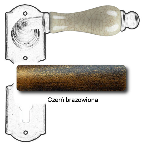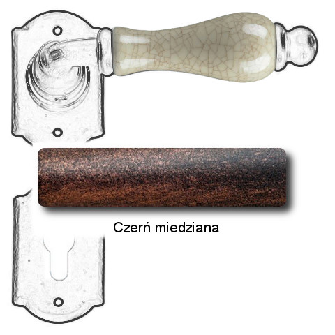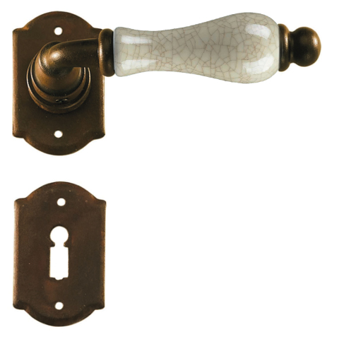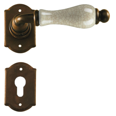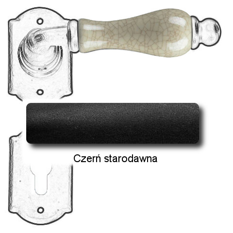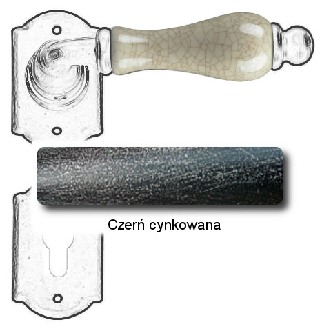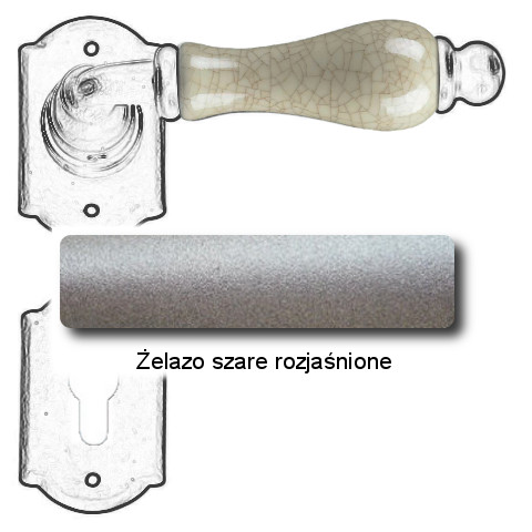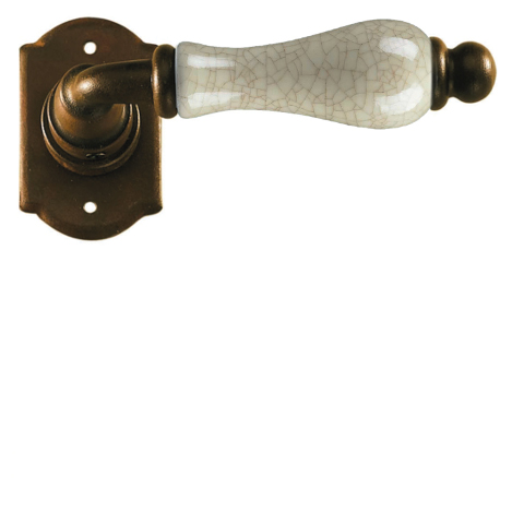 Klasyczna klamka na rozecie wykonana z ręcznie kutego żelaza oraz oryginalnej porcelany Bavaria D5 (porcelana kremowa spękana). Dostępne warianty: bez dolnej rozety, z dolną rozetą na klucz, na wkładkę oraz z blokadą WC.
