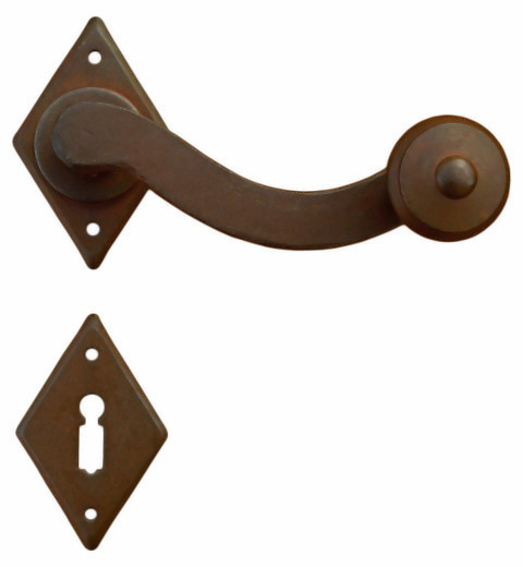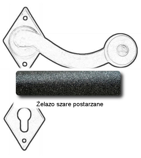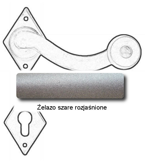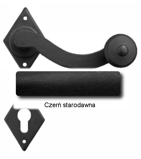Klasyczna klamka na rozecie wykonana z ręcznie kutego żelaza i dostępna w czternastu powłokach kolorystycznych. Dostępne warianty: bez dolnej rozety, z dolną rozetą na klucz, na wkładkę oraz z blokadą WC.