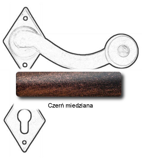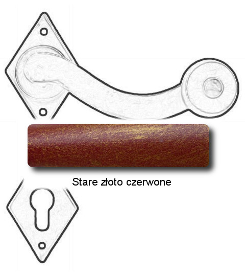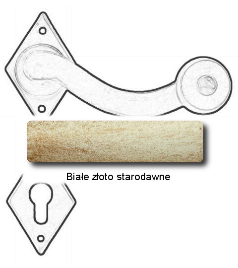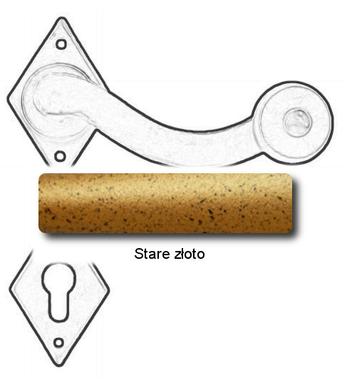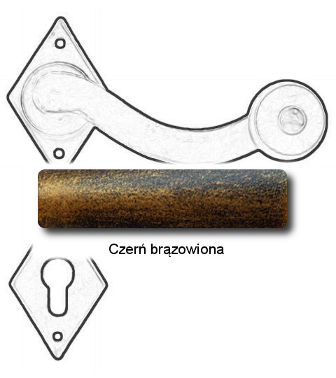 Wymiary: rozeta 70x45x2 mm, dł. rękojeści 105 mm.