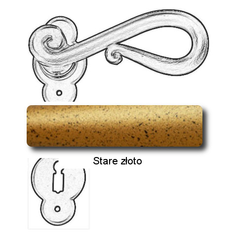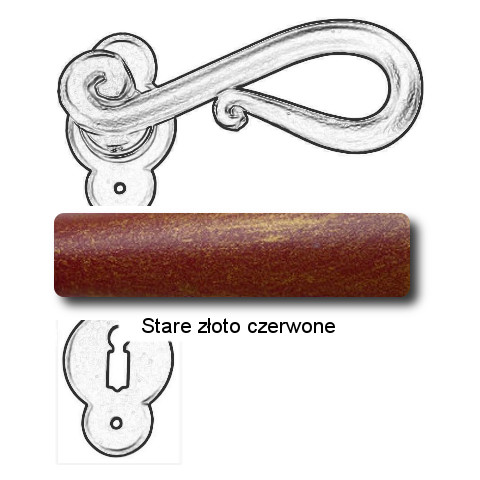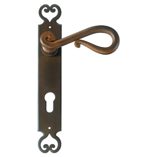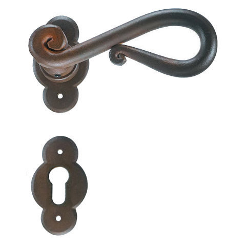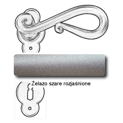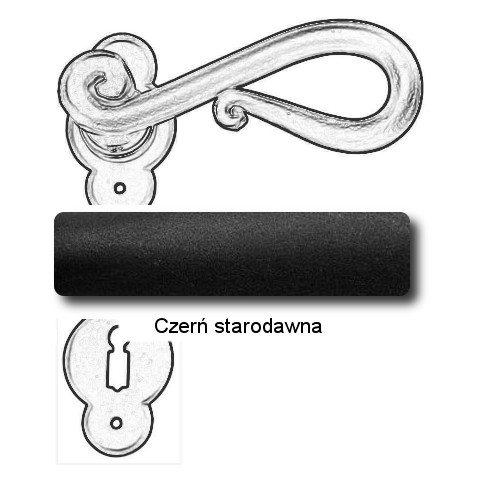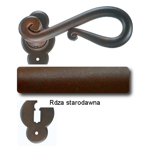 Klasyczna klamka na rozecie wykonana z ręcznie kutego żelaza i dostępna w czternastu powłokach kolorystycznych. Dostępne warianty klamki Roma 2201: bez dolnej rozety, z dolną rozetą na klucz, na wkładkę oraz z blokadą WC.