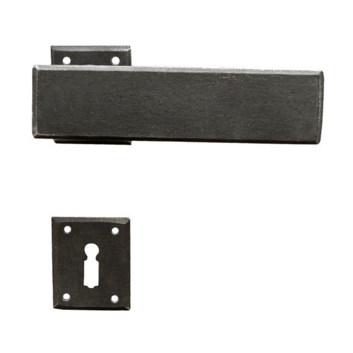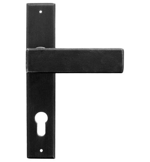 Klamka z kategorii Modern na szyldzie długim wykonana z ręcznie kutego żelaza i dostępna w trzynastu powłokach kolorystycznych. Dostępne warianty klamki Stockholm 1820: bez otworu, z otworem na klucz, na wkładkę oraz z blokadą WC.
