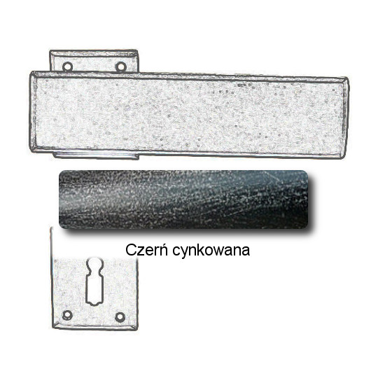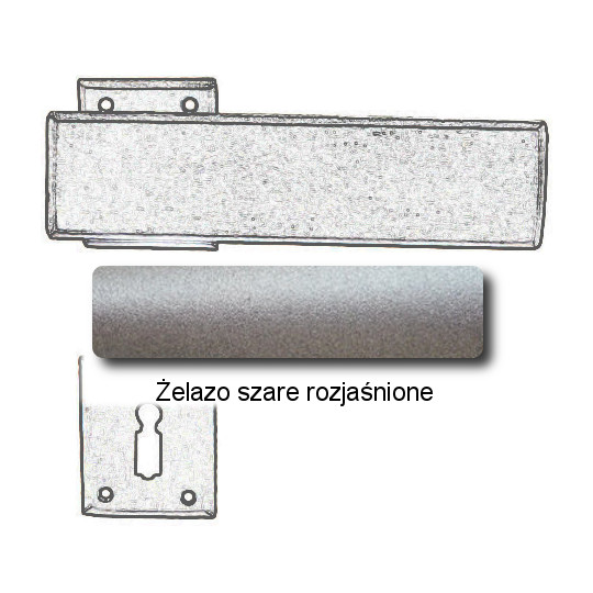 Wymiary: rozeta 5x40x2 mm, dł. rękojeści 110 mm.