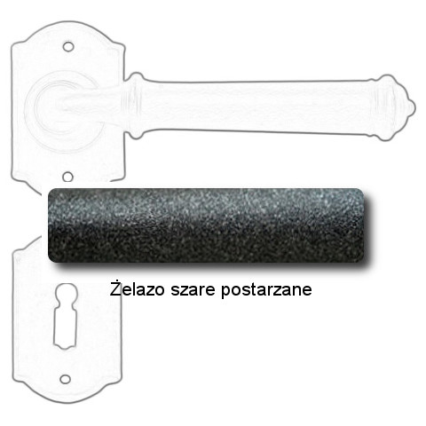 Wymiary: rozeta 50x40x2 mm, dł. rękojeści 110 mm.
