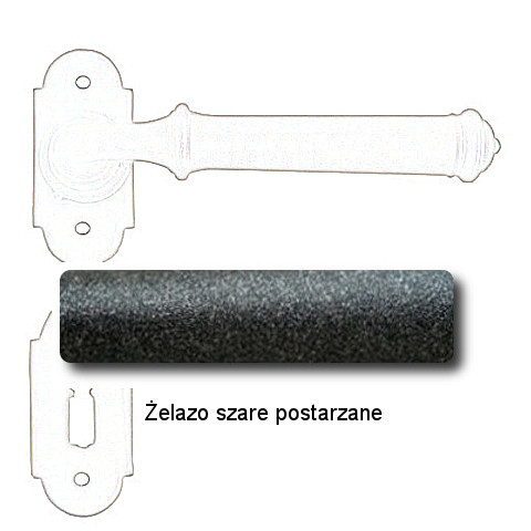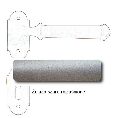 Wymiary: rozeta 66x30x2 mm, dł. rękojeści 110 mm.