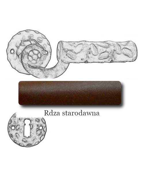 Rustykalna klamka na rozecie wykonana z ręcznie kutego żelaza oraz dostępna w trzynastu powłokach kolorystycznych. Warianty klamki Widar 21: bez dolnej rozety, z rozetą na klucz, na wkładkę oraz z blokadą WC.